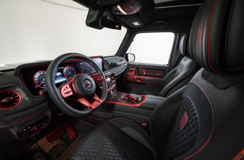 The new Brabus Rocket G900 is based on the Mercedes AMG G63. Under the hood, the modified V8 engine, with an increased displacement of 4.5 liters, produces a staggering 900 horses. 309 horsepower more than the stock G63. Maximum torque is also increased to 922 pound-feet but is electronically limited to 774 pound-feet to protect the drivetrain.